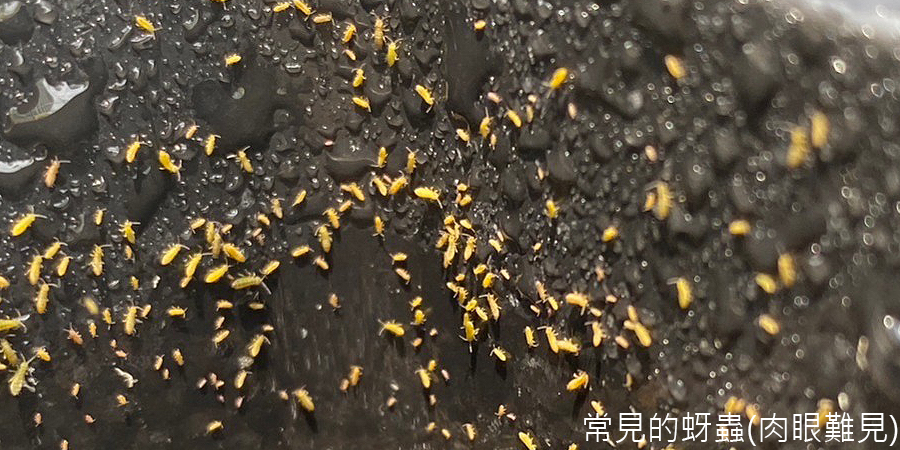 | 最常見的為幼小的蚜蟲,常造成葉片枯黃不健康。 |